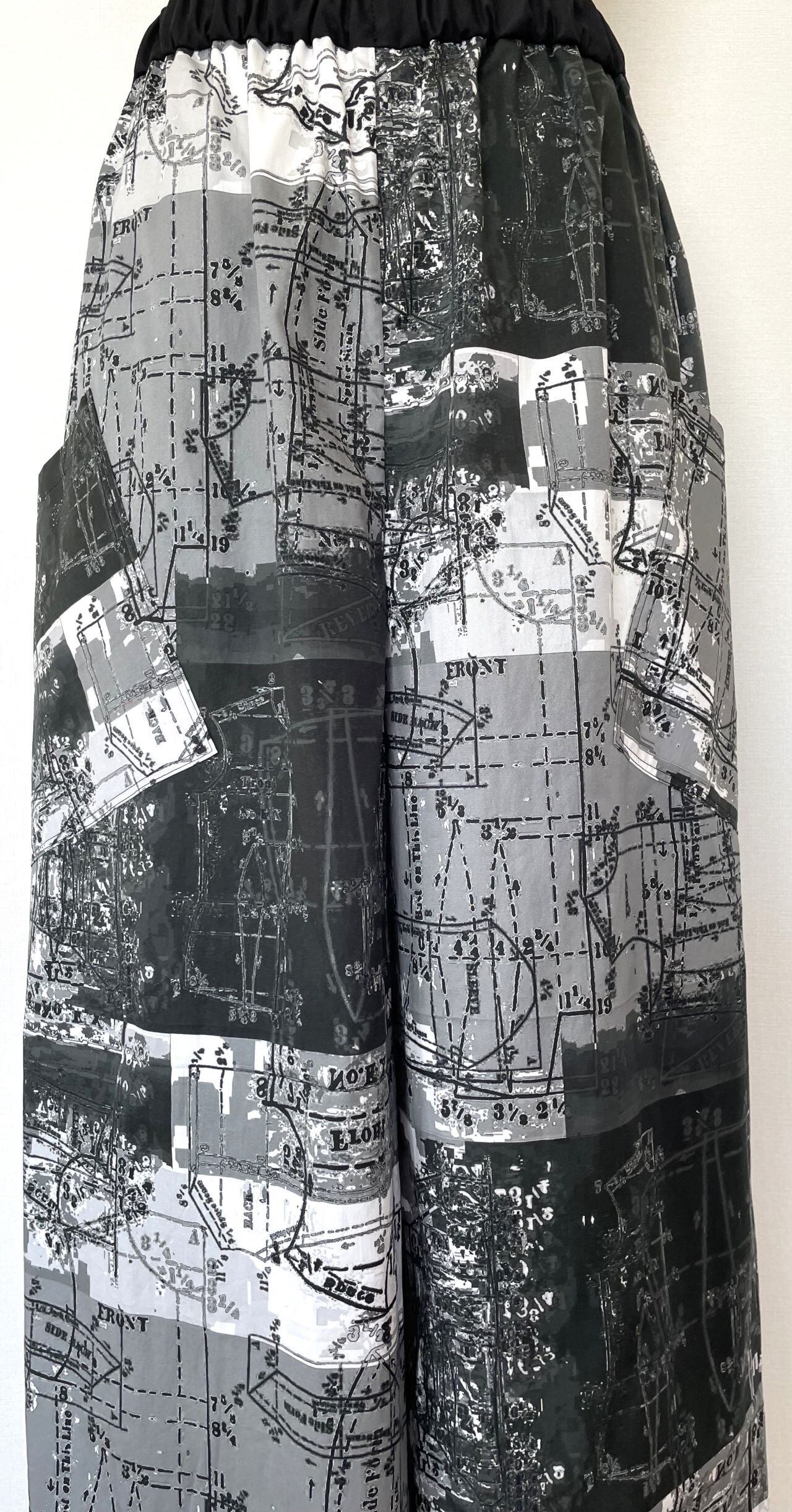 自身で描いたコラージュアートをプリントした生地で、型紙、縫製まですべての工程をデザイナー自身が行いました。