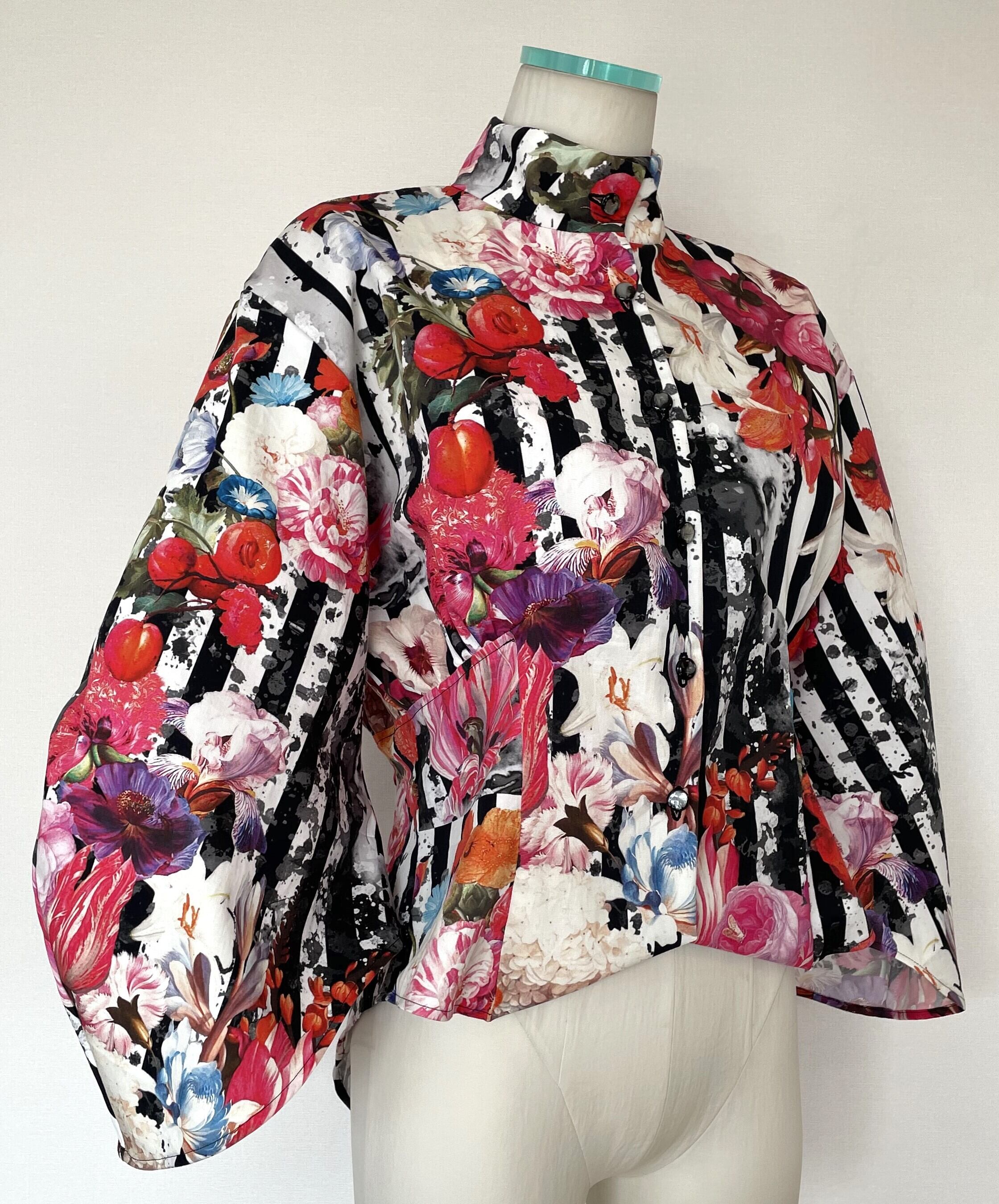 ウエストシェイプの身頃とバルーンスリーブのコントラストが美しいシャツです。