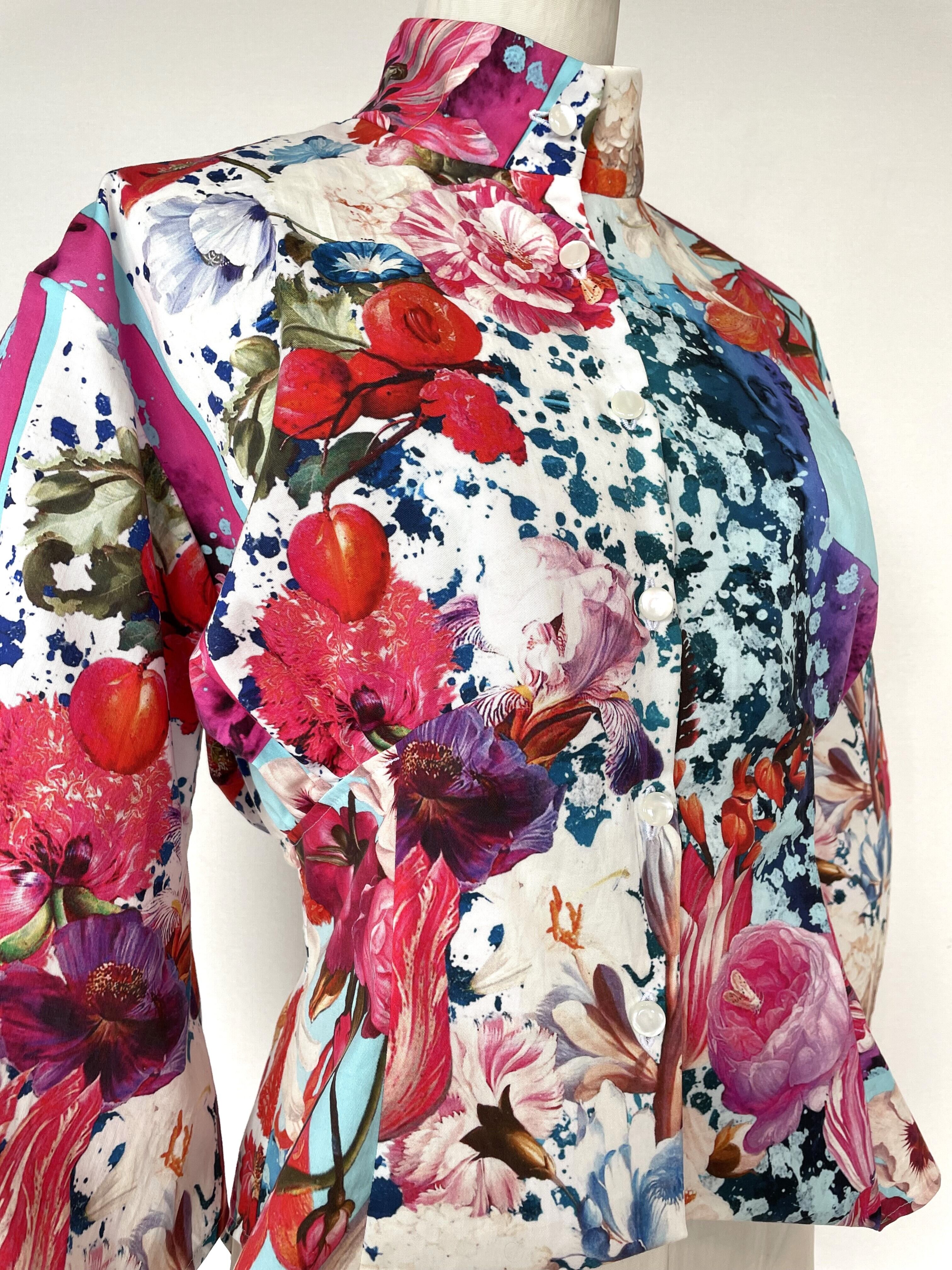 ウエストシェイプの身頃とバルーンスリーブのコントラストが美しいシャツです。