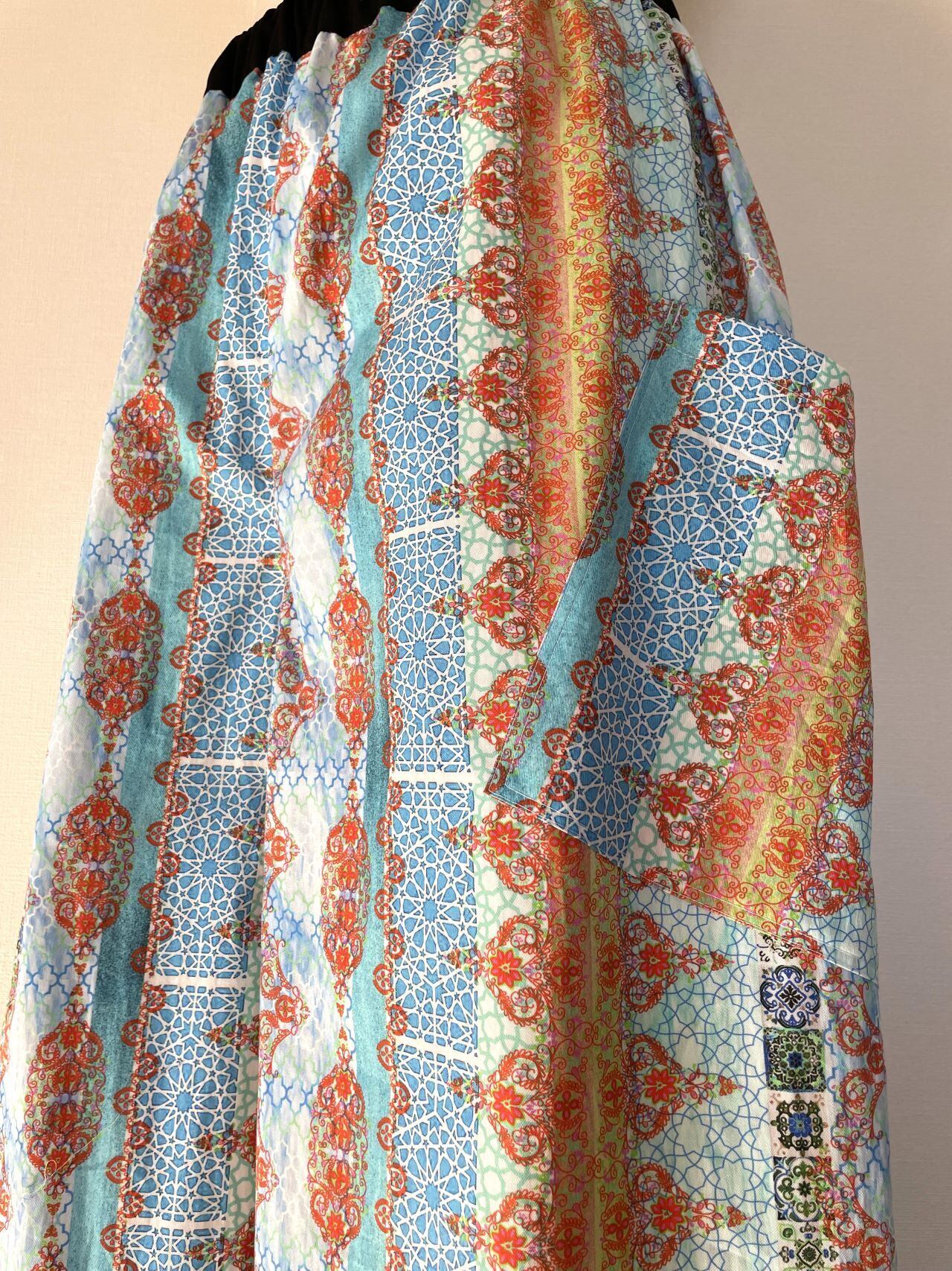 オリジナルのプリント生地のワイドパンツです。