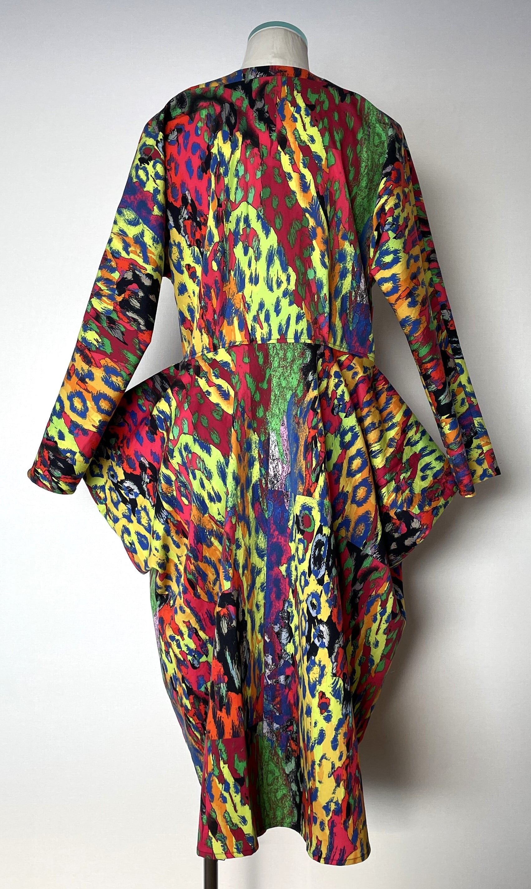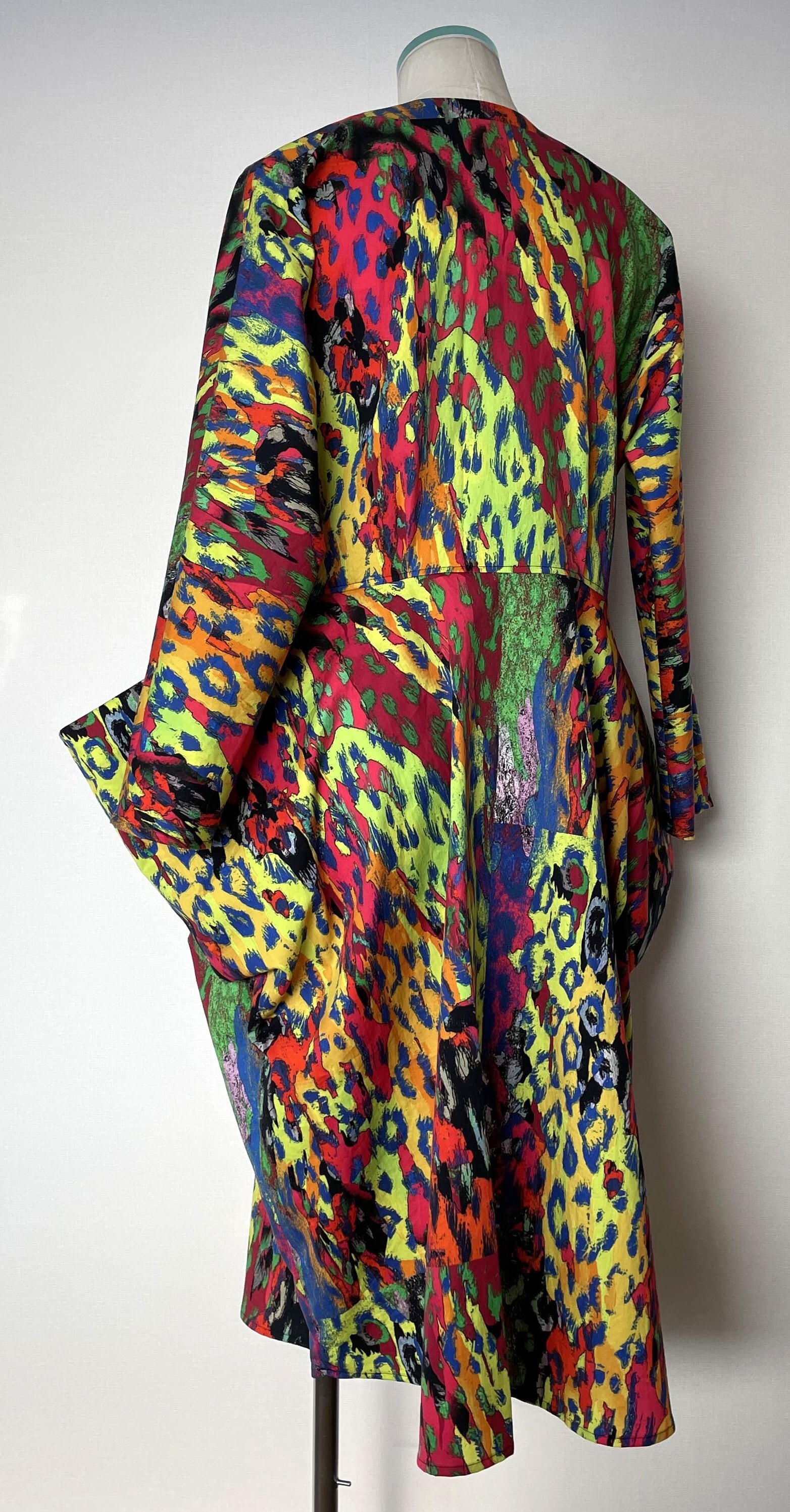 オリジナルアートをプリントした生地で、型紙、縫製まで、すべての工程をデザイナー自身が行ったオリジナルのワンピースです。