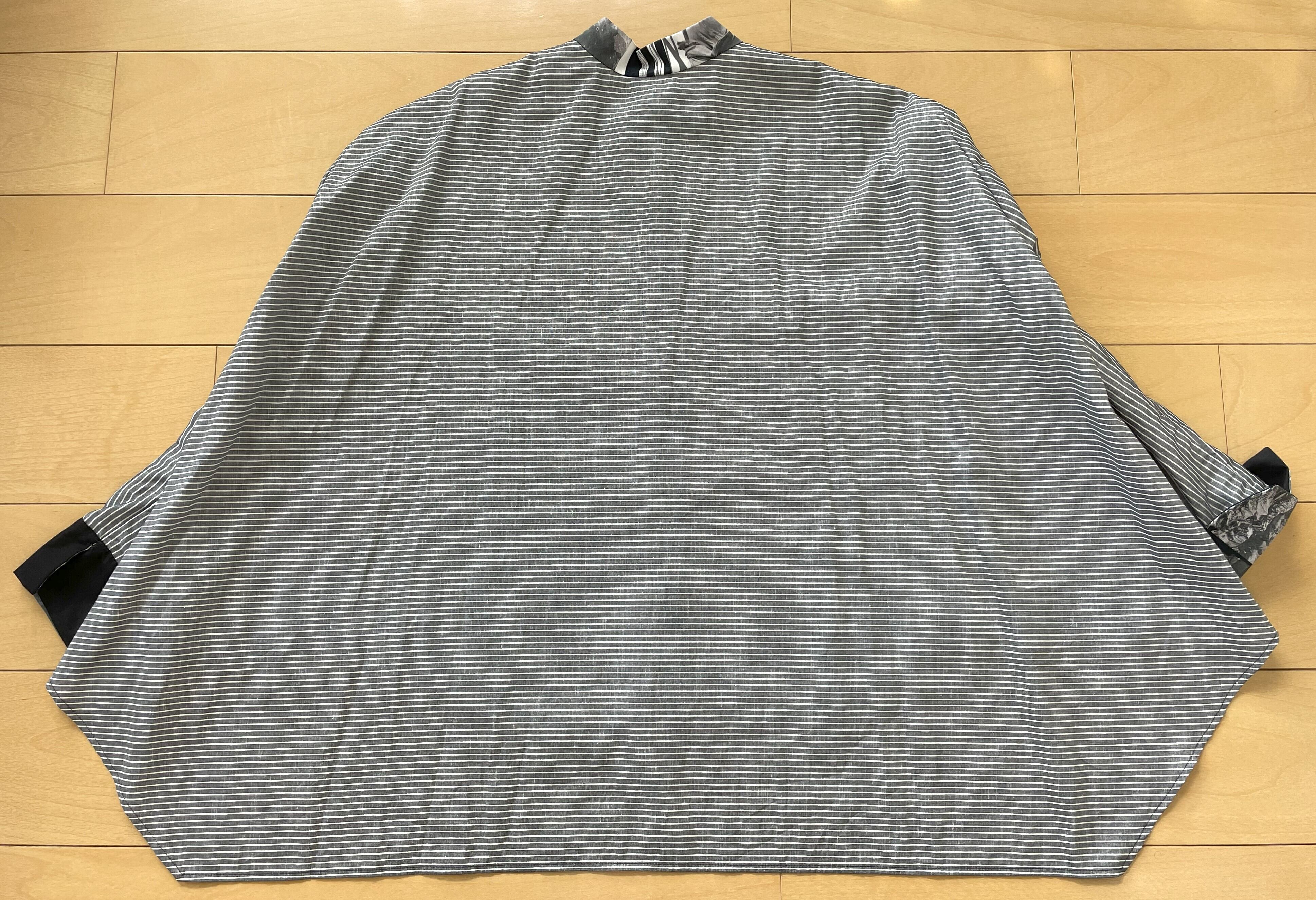 後身頃がマントのように広がった個性的なシルエットのシャツです。