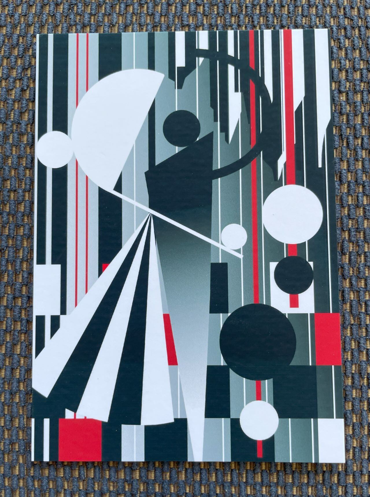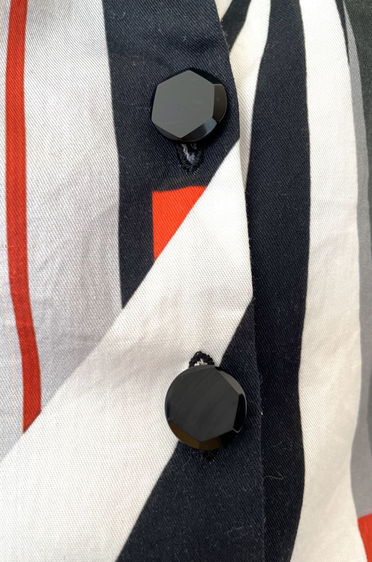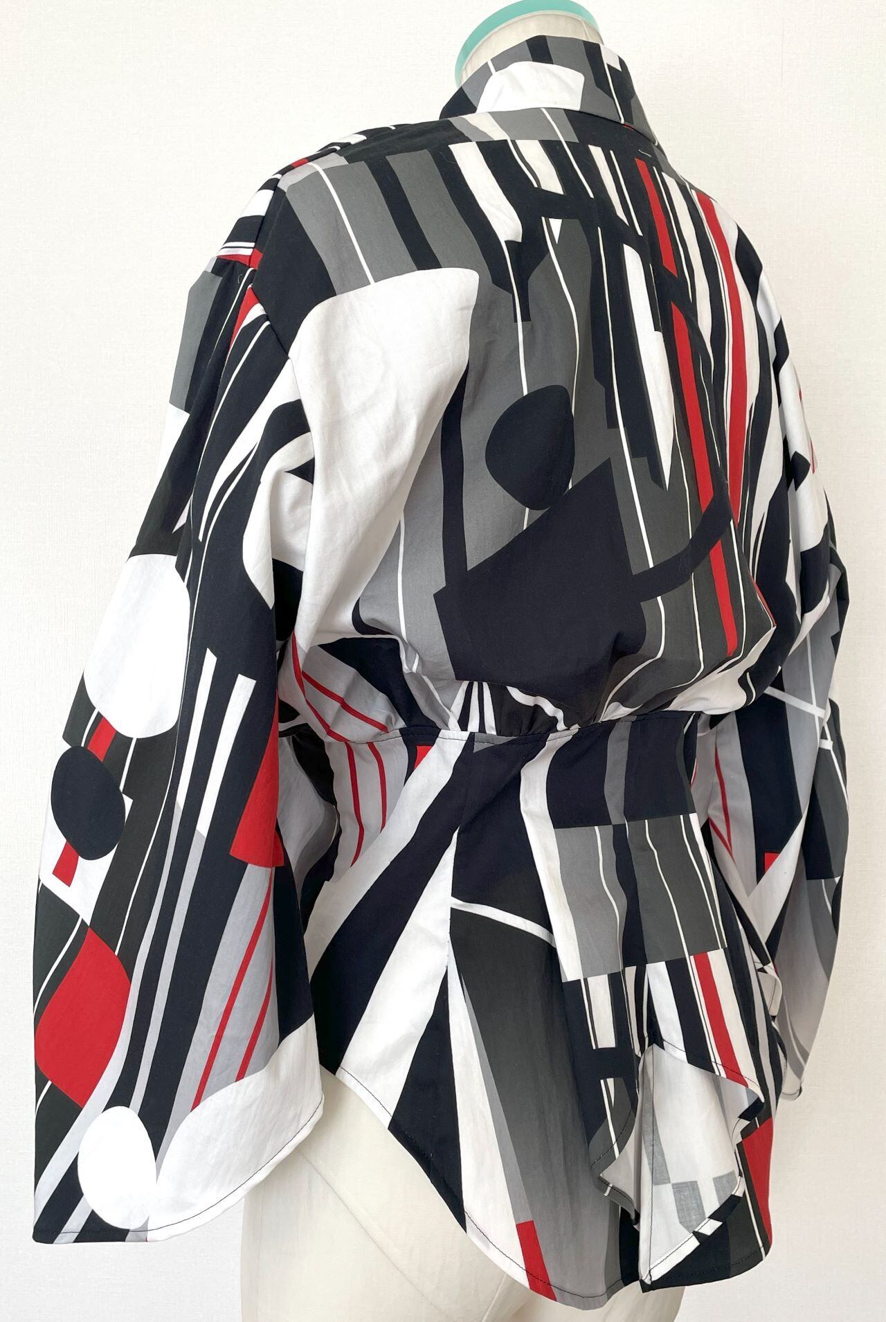 自身で描いたコラージュアートをプリントした生地で、型紙、縫製まですべての工程を一人で行った1点物です。